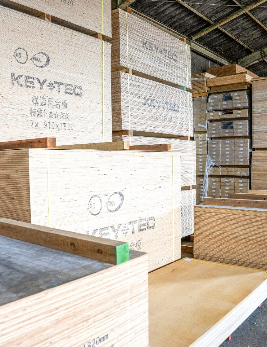 当社は、住宅建築に欠かせない多様な建材を取り扱う卸売事業も展開しています。集成材や化粧合板、新建材をはじめ、住宅設備やエクステリア材に至るまで、幅広い商品を取り揃えております。時代のニーズに合わせた新しい建材や機能性の高い資材も積極的に導入し、設計・施工の可能性を広げています。お客様が求める品質とコスト、そして納期にしっかりと応え、住まいづくりに欠かせないパートナーとして信頼される存在を目指しています。